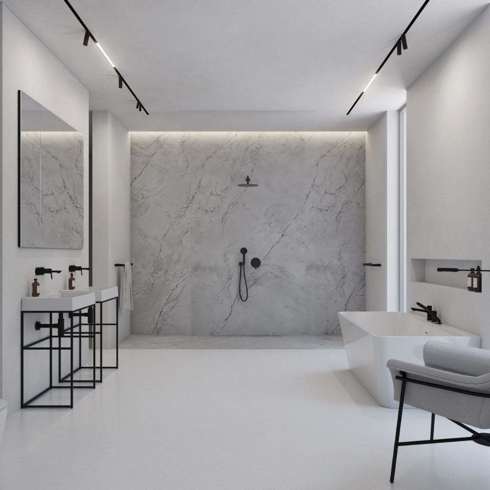 Flush-mounted installation ensures the aesthetics of the bathroom