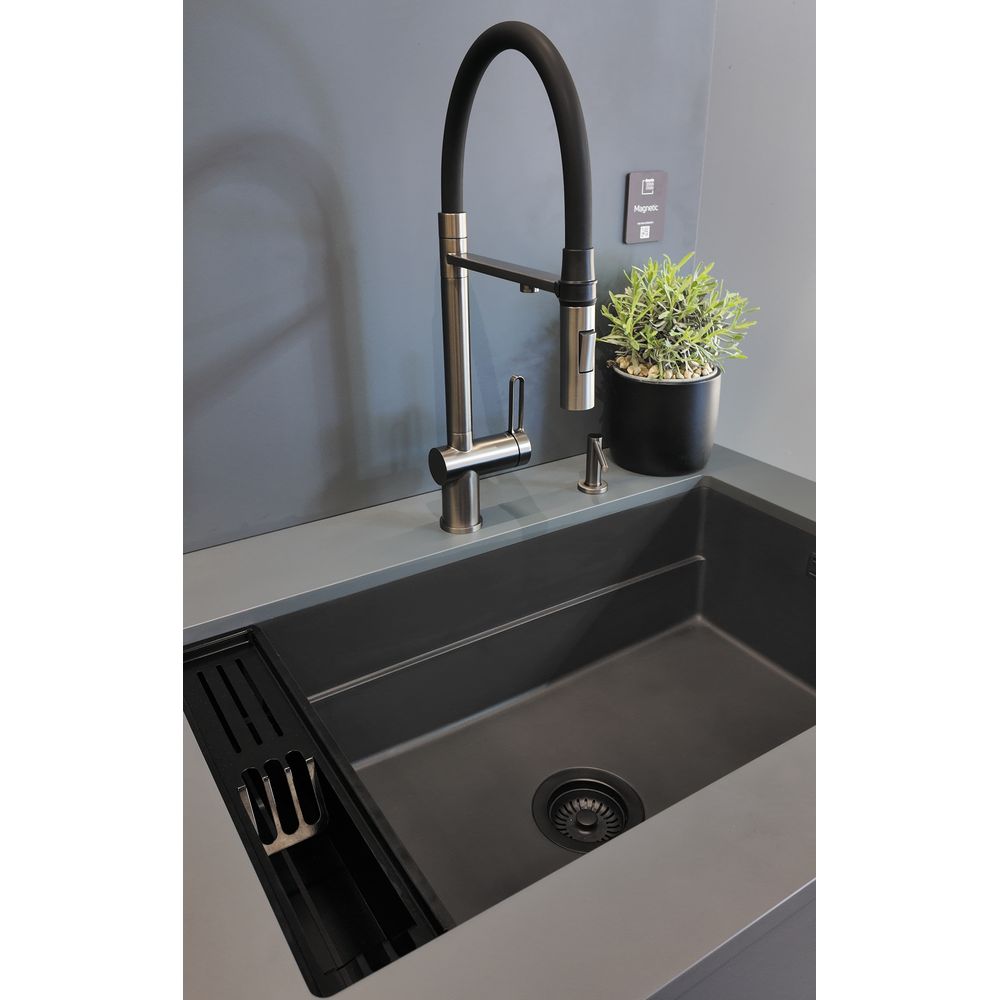 Steel accessories designed for undermount Magnetic sinks are the perfect solution for drying dishes. These accessories, thanks to magnets embedded in the sink's structure, are attracted to the side wall of the sink, allowing for easy and stable installation without the need for additional fasteners. Precisely fitted, they ensure convenient dish drying, keeping your kitchen tidy and organized.