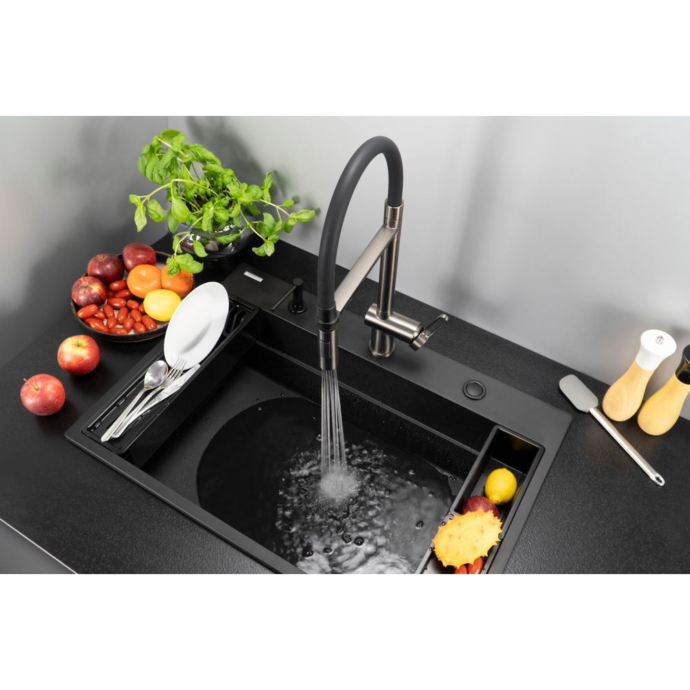 Its elegant design perfectly matches the minimalist aesthetics of a granite sink. This stylish button allows you to instantly close or open the drain with the touch of a finger. The waste kit with automatic drain closing adds functionality to your kitchen while emphasizing its elegance.