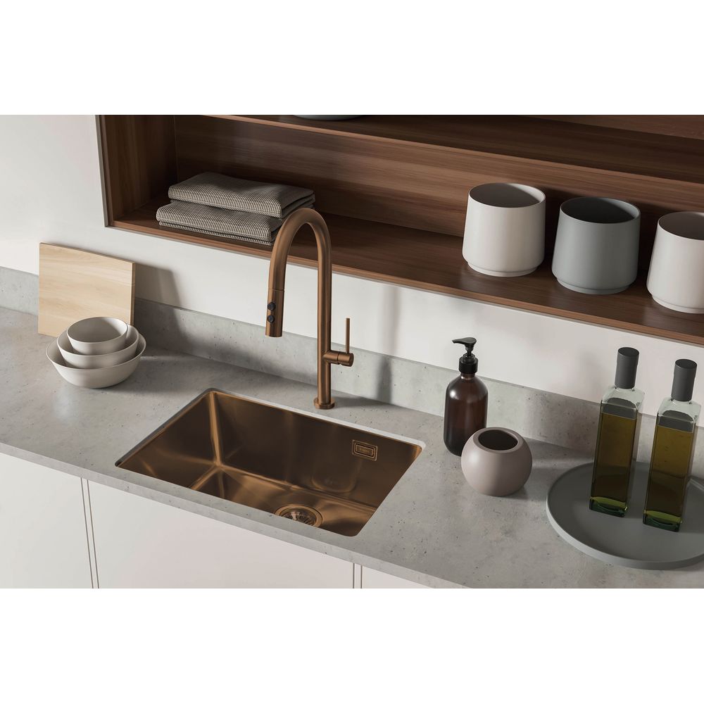 Brushed bronze applied using the PVD method is a modern finish for fixtures that combines elegance and durability. It boasts a warm hue, a balance between gloss and matte, creating a cozy atmosphere in any interior. PVD technology provides exceptional scratch resistance, keeping fixtures looking new for years to come. This coating is also easy to clean and resistant to fingerprints and limescale.