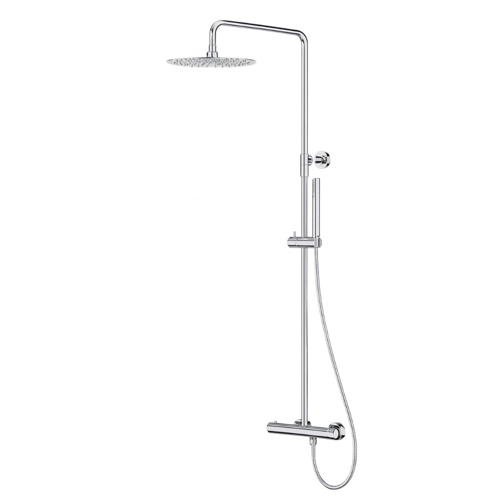 Upgrade your bathroom with the Lavita Orion Wall-Mounted Thermostatic Shower Set with Rain Shower. This sleek system combines a large overhead rain shower, practical hand shower and thermostatic mixer to give you a comfortable, safe and designer-quality shower experience every day.