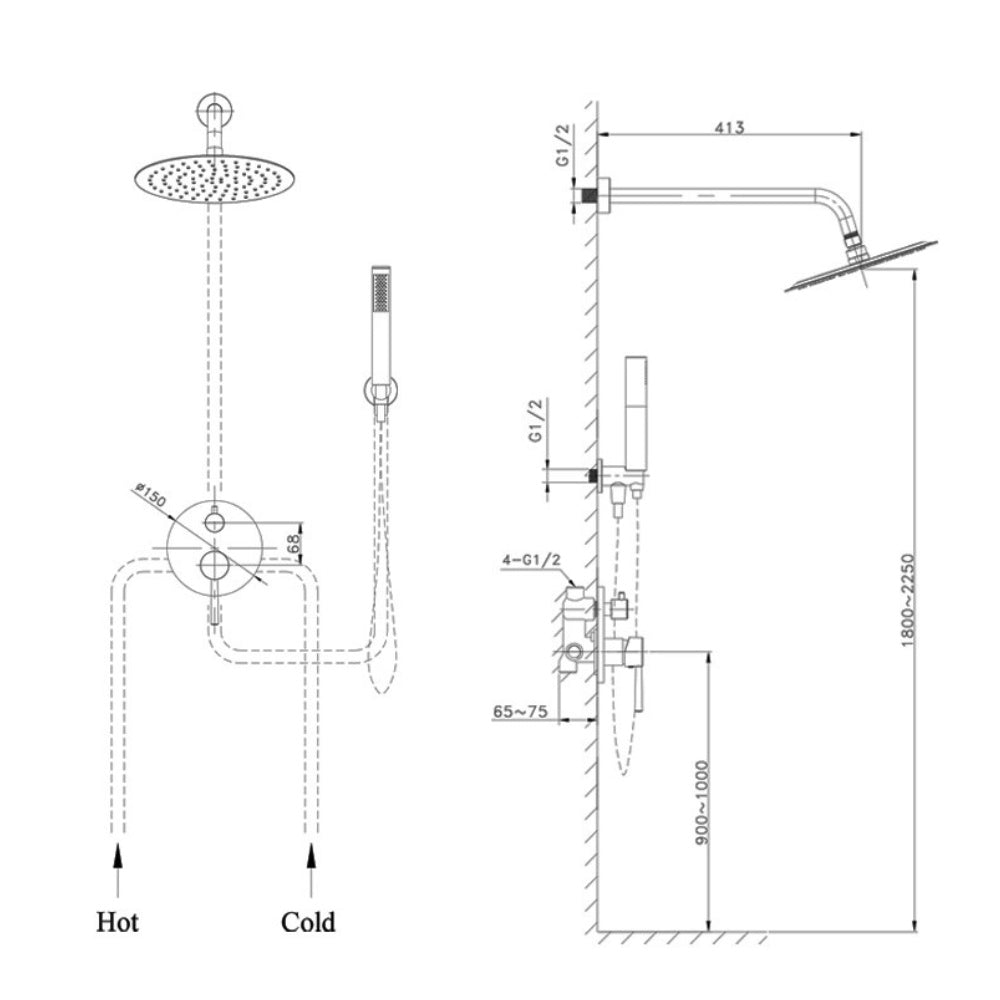 - Shower Head: Round rain shower, large diameter for full-coverage spray