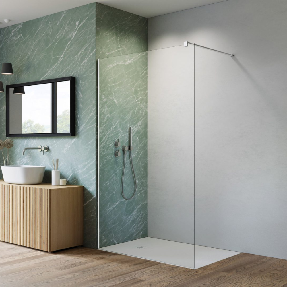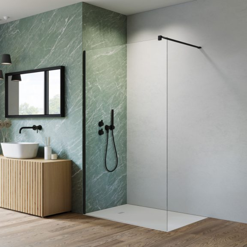 Upgrade your bathroom with the Radaway Nes Walk-In II Frameless Shower Panel, available in two premium finishes: classic Chrome and bold Black. Designed with 6 mm tempered safety glass and an Easy-Clean coating, this elegant shower panel combines durability, low maintenance, and modern style. Its tray-free design creates a seamless, open entry, making it ideal for contemporary and accessible bathrooms.