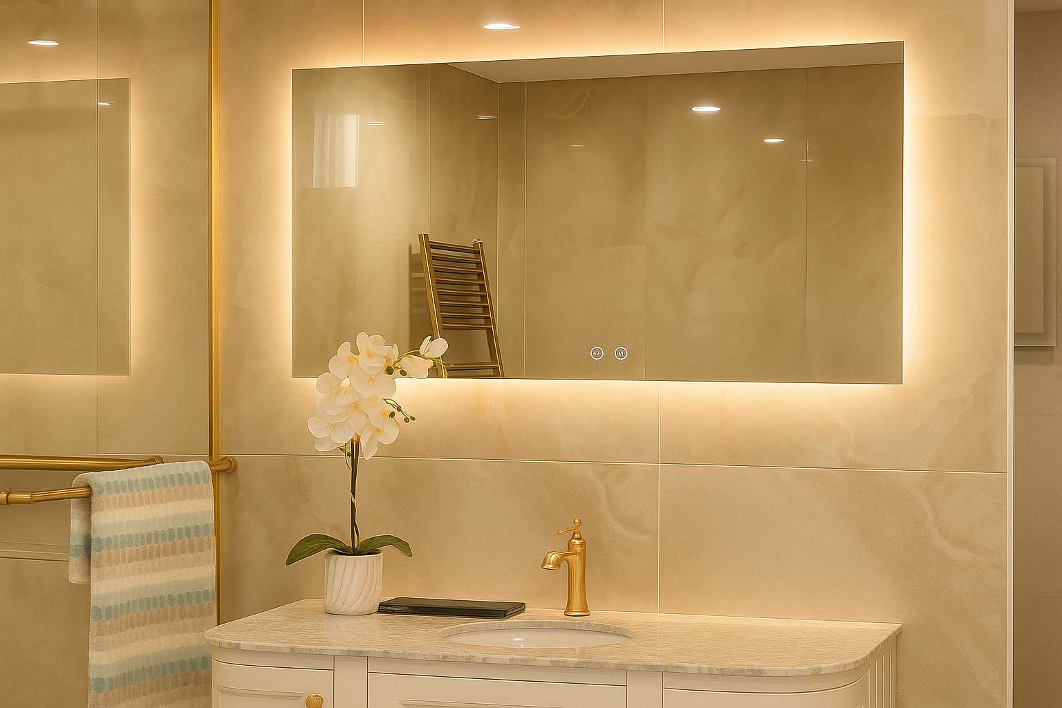 Intelligent Dual Touch Control: The mirror is equipped with two seamless touch buttons integrated into the surface.