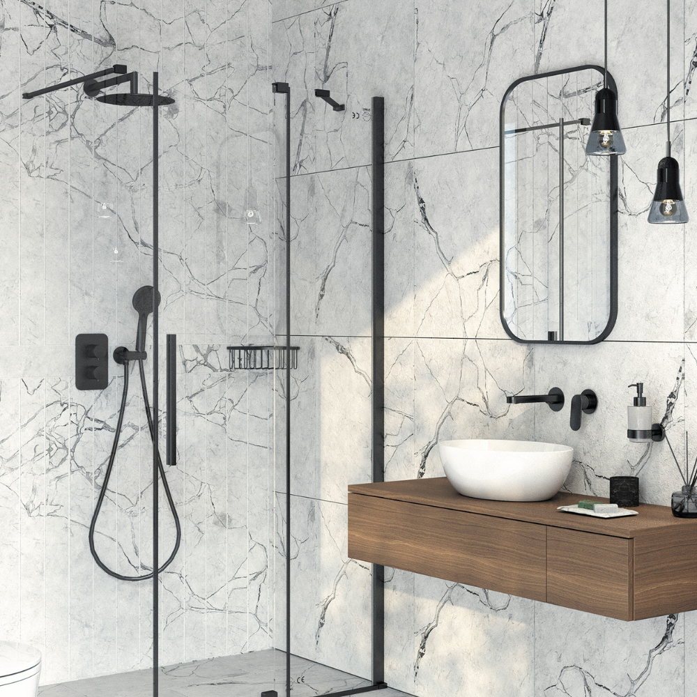 Not Included: Shower tray and glass enclosure must be purchased separately.